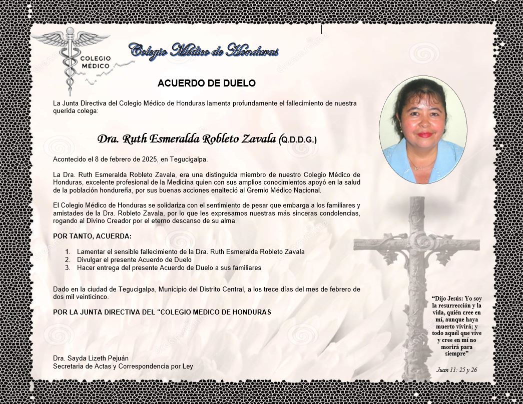Acuerdo de Duelo Dra. Ruth Esmeralda Robleto Zavala (Q.D.D.G.)