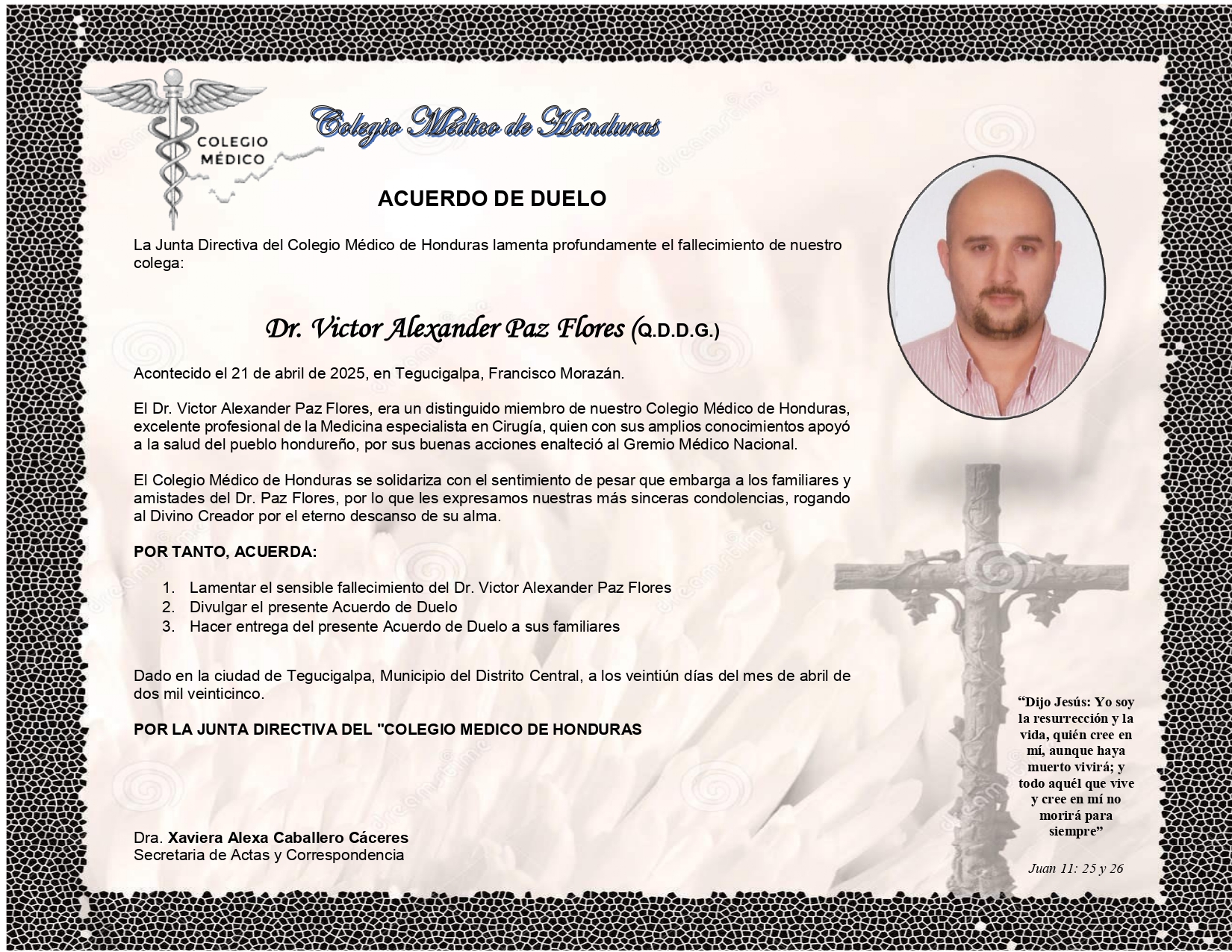 Acuerdo de Duelo Dr. Victor Alexander Paz Flores (Q.D.D.G.)