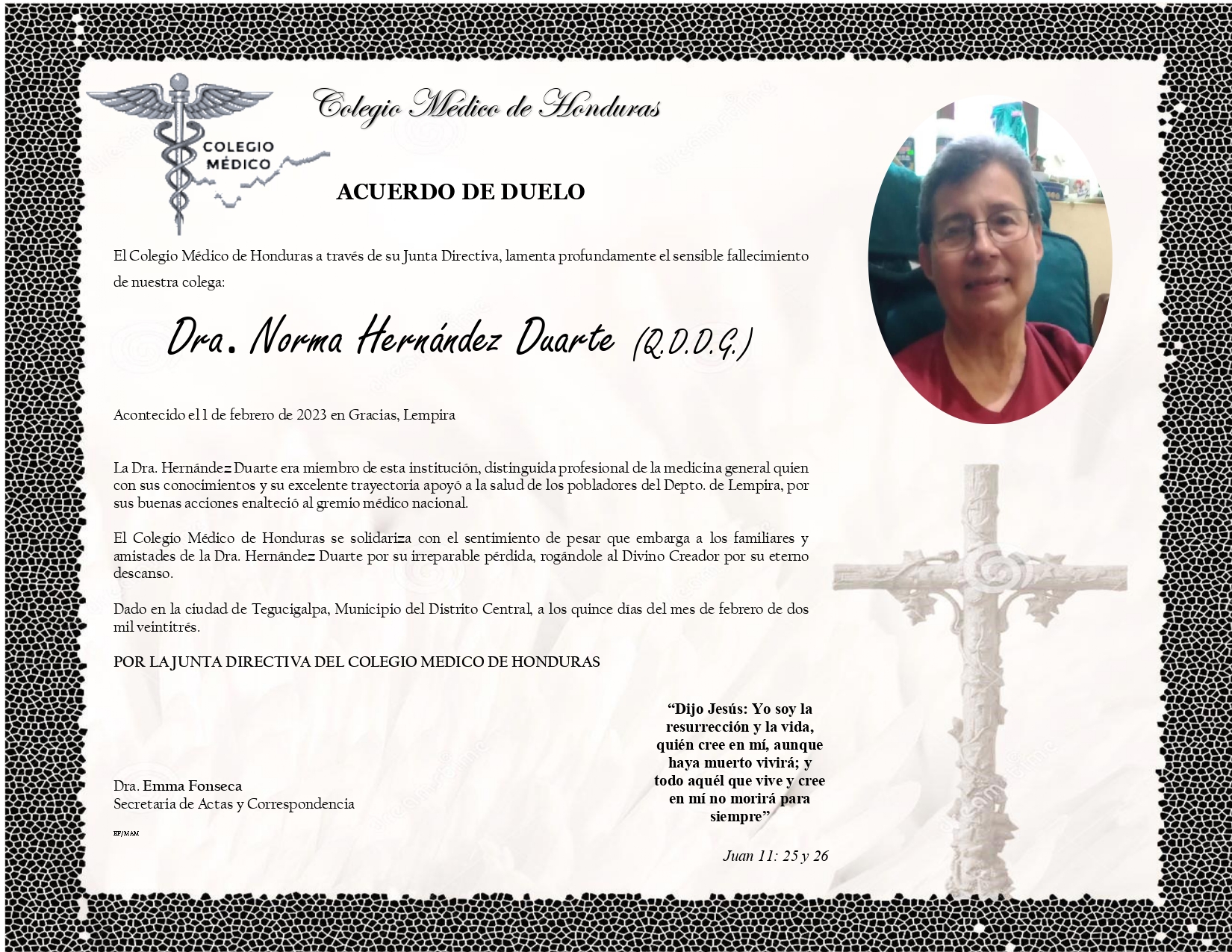 Acuerdo de Duelo Dra. Norma Hernández Duarte