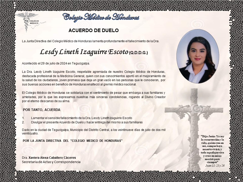 Acuerdo de Duelo Dra. Lesdy Lineth Izaguirre Escoto (Q.D.D.G)