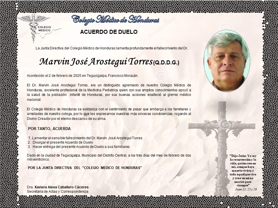 Acuerdo de Duelo Dr. Marvin José Arostegui Torres (Q.D.D.G.)