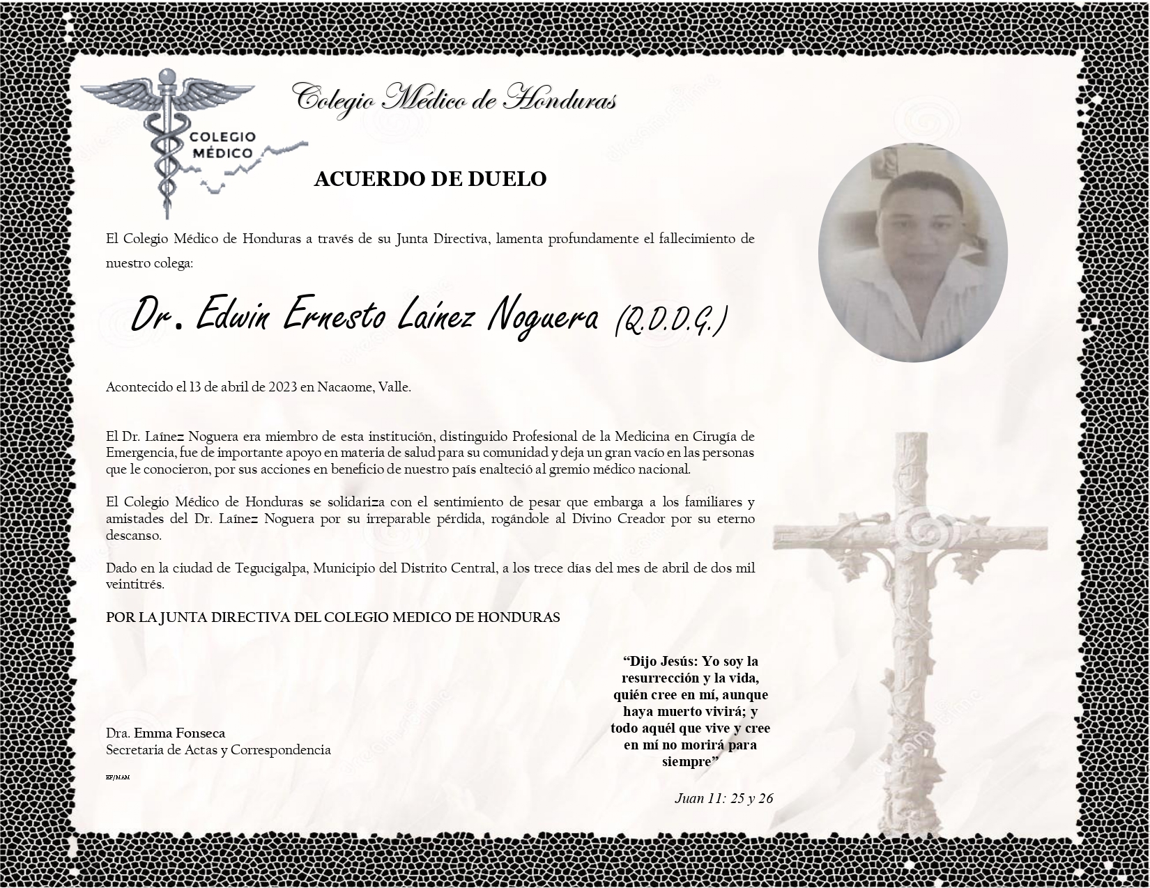 Acuerdo de Duelo Dr. Edwin Ernesto Laínez Noguera