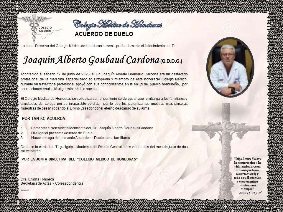 Acuerdo de Duelo Dr. Joaquín Alberto Goubaud Cardona