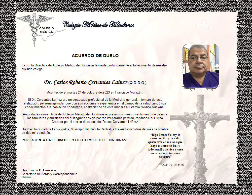 Acuerdo de Duelo Dr. Carlos Roberto Cervantes Laínez