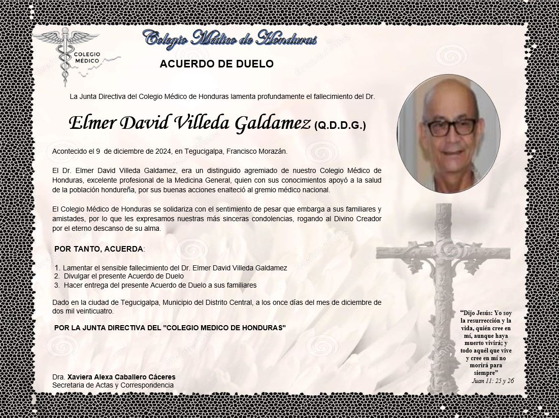Acuerdo de Duelo Dr. Elmer David Villeda Galdamez (Q.D.D.G.)