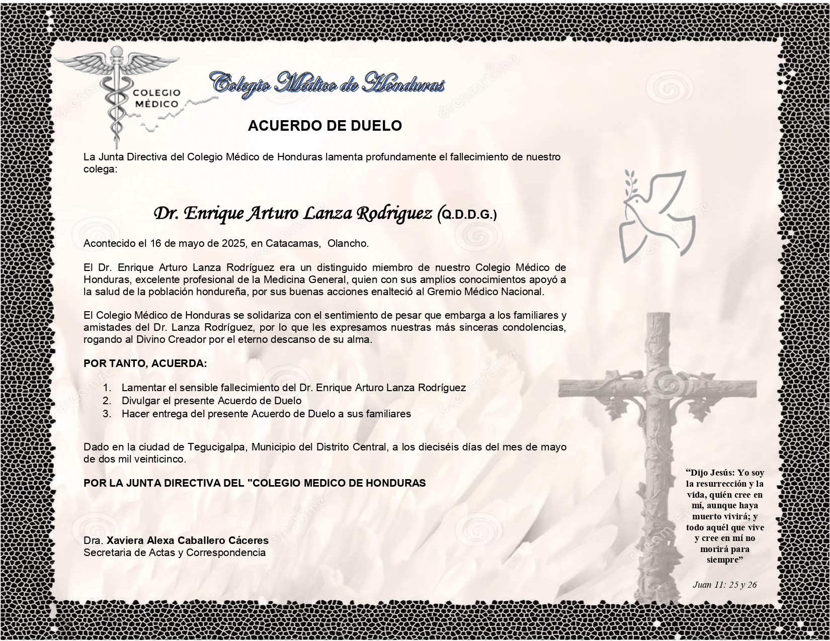 Acuerdo de Duelo Dr. Enrique Arturo Lanza Rodríguez (Q.D.D.G.)