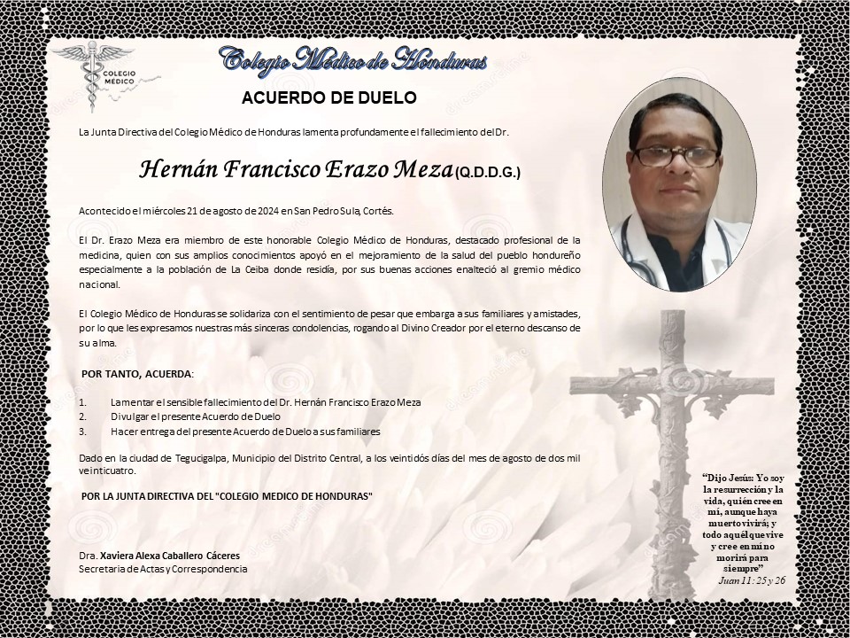 Acuerdo de Duelo Dr. Hernán Francisco Erazo Meza (Q.D.D.G.)