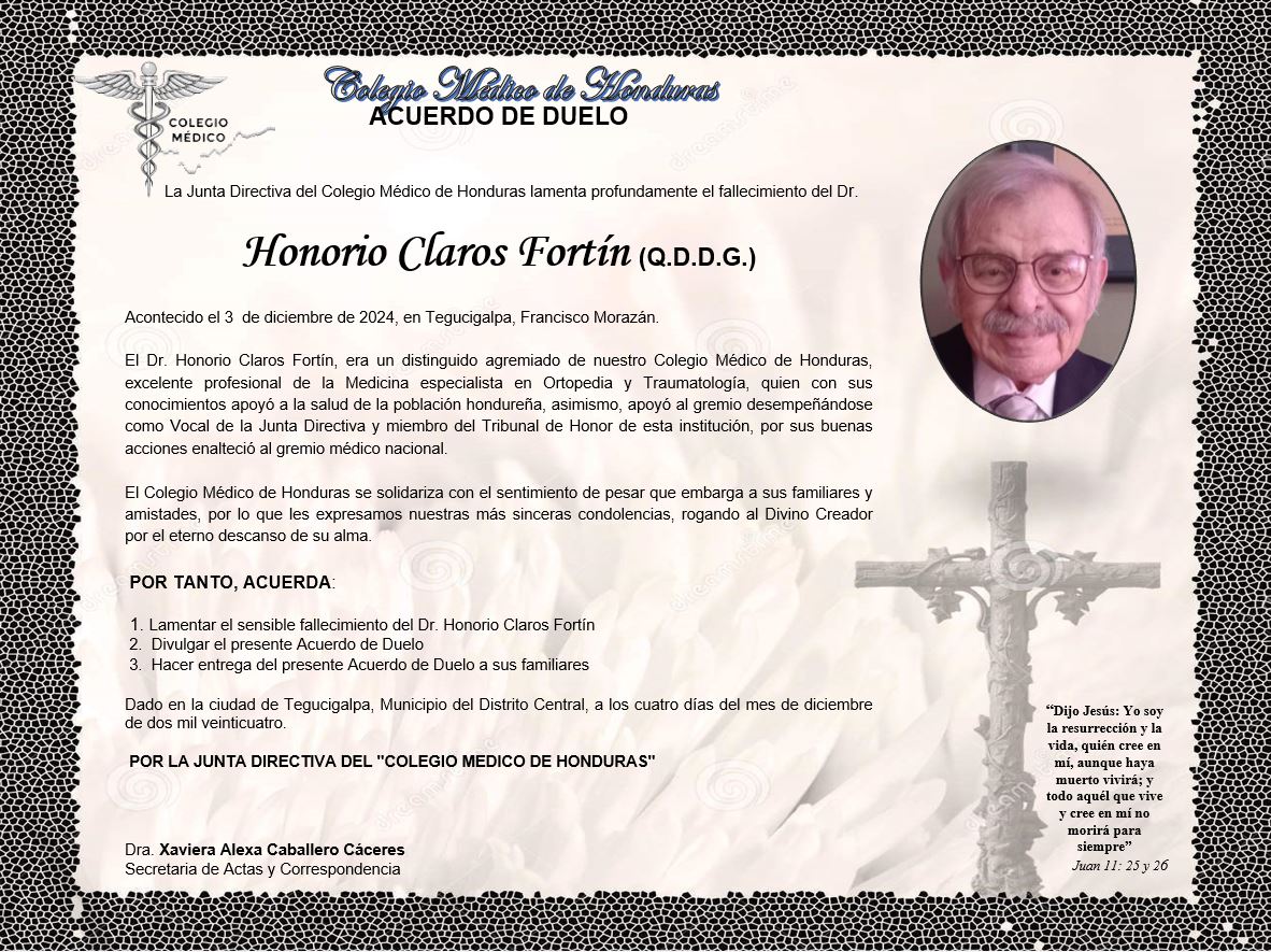 Acuerdo de Duelo Dr. Honorio Claros Fortín (Q.D.D.G.)
