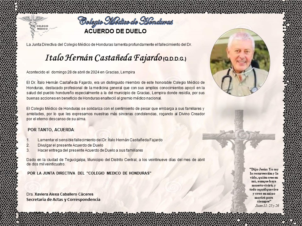 Acuerdo de Duelo Dr. Italo Hernán Castañeda Fajardo (Q.D.D.G.)
