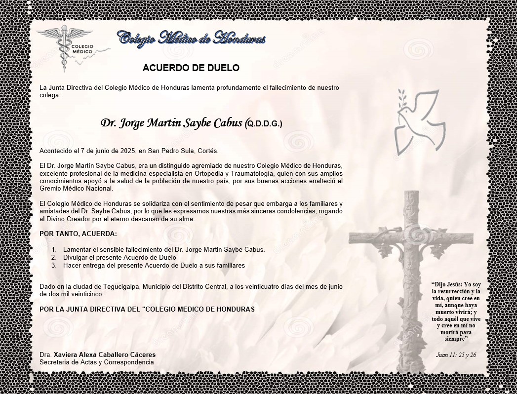 Acuerdo de Duelo Dr. Jorge Martin Saybe Cabus (Q.D.D.G.)