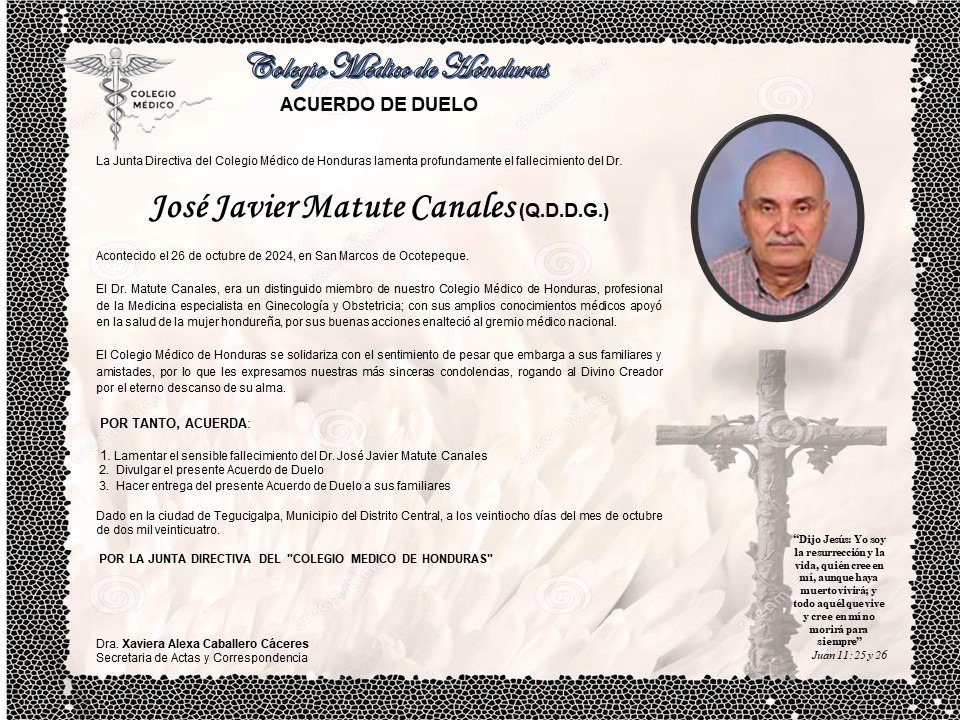 Acuerdo de Duelo Dr. José Javier Matute Canales (Q.D.D.G)