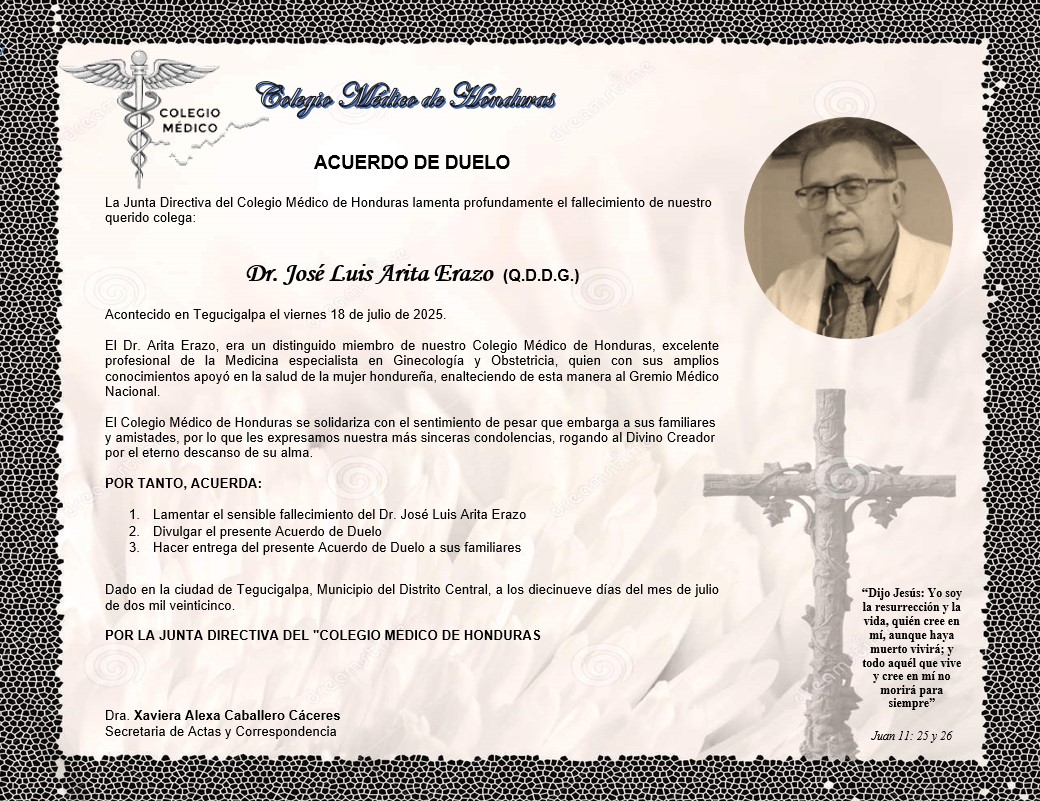 Acuerdo de Duelo Dr. José Luis Arita Erazo (Q.D.D.G.)