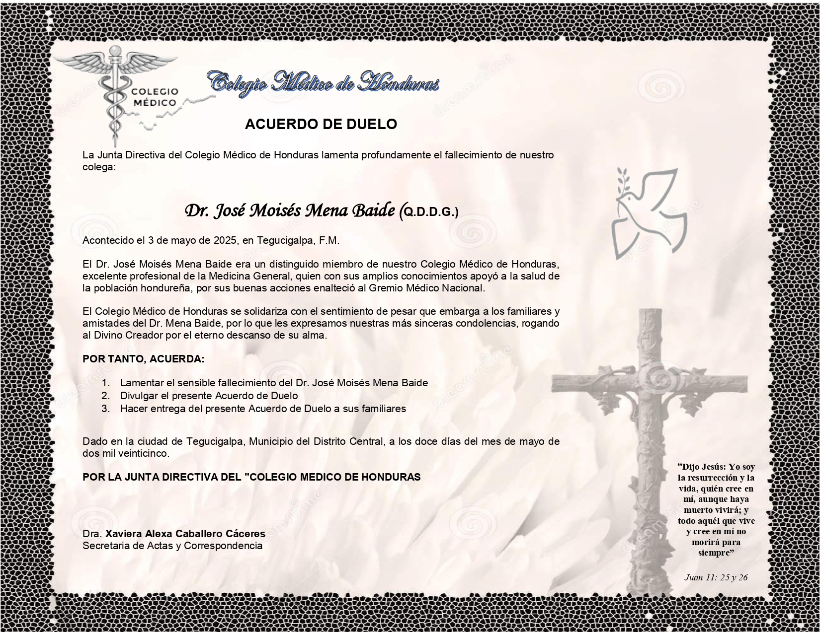 Acuerdo de Duelo Dr. José Moisés Mena Baide (Q.D.D.G.)