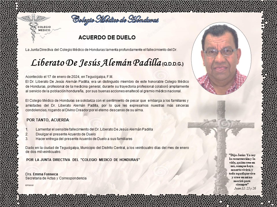 Acuerdo de Duelo Dr. Liberato de Jesús Alemán Padilla