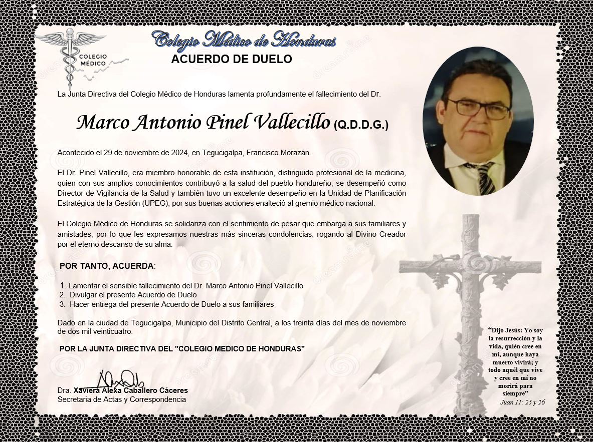 Acuerdo de Duelo Dr. Marco Antonio Pinel Vallecillo (Q.D.D.G.)