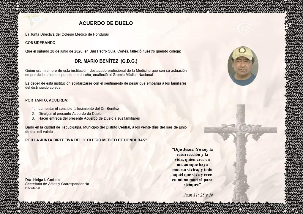 ACUERDO DE DUELO - DR. MARIO BENÍTEZ (Q.D.G.)