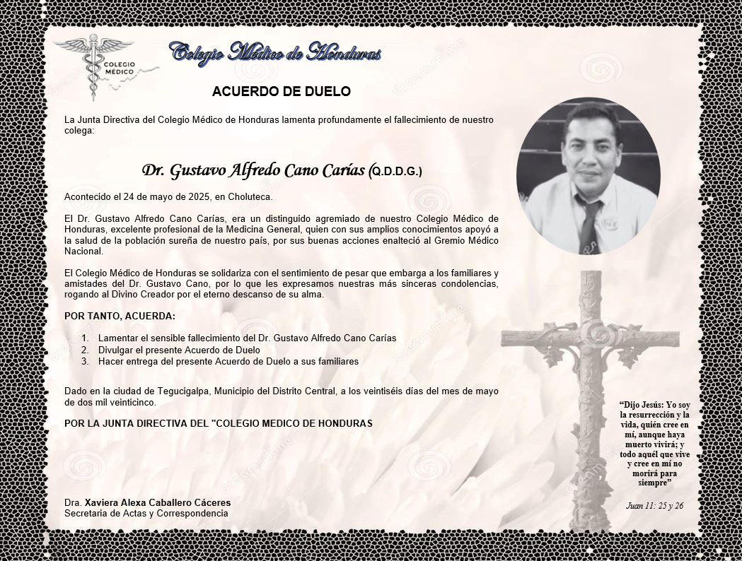 Acuerdo de Duelo Dr. Gustavo Alfredo Cano Carías (Q.D.D.G.)