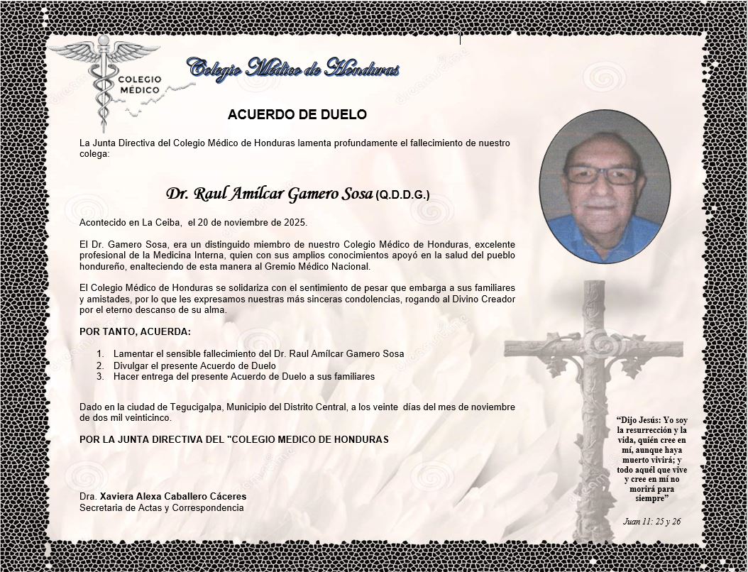 Acuerdo de Duelo Dr. Raúl Amílcar Gamero Sosa (Q.D.D.G.)