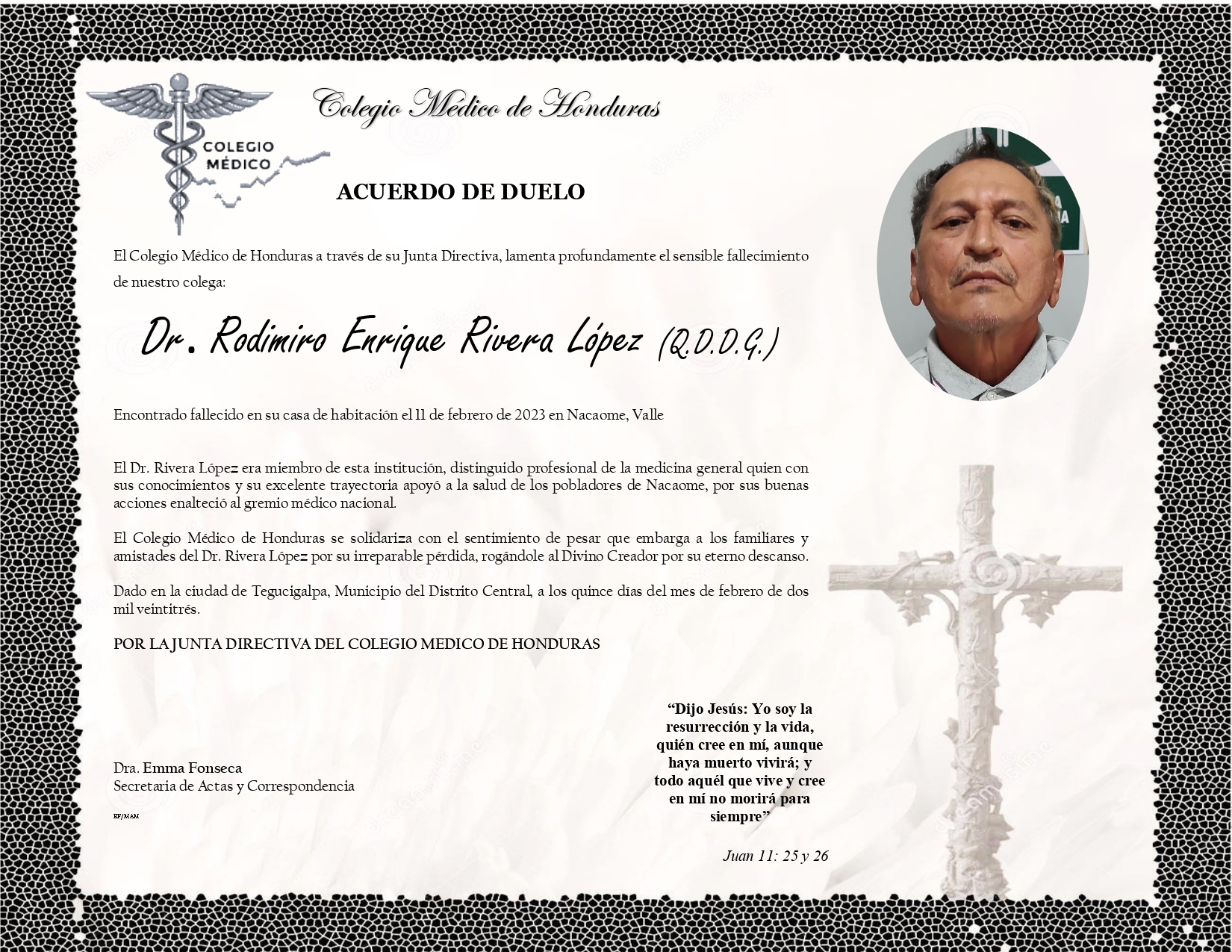 Acuerdo de Duelo Dr. Rodimiro Enrique Rivera López