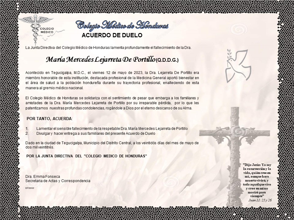 Acuerdo de Duelo Dra. María Mercedes Lejarreta de Portillo
