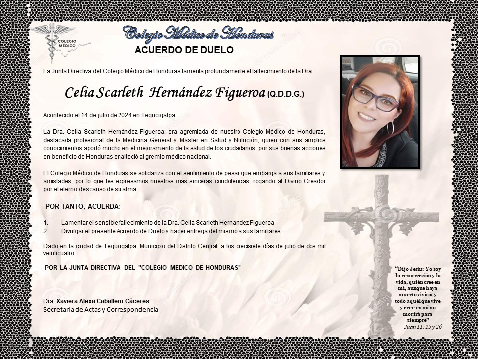 Acuerdo de Duelo Dra. Celia Scarleth Hernández Figueroa (Q.D.D.G.)