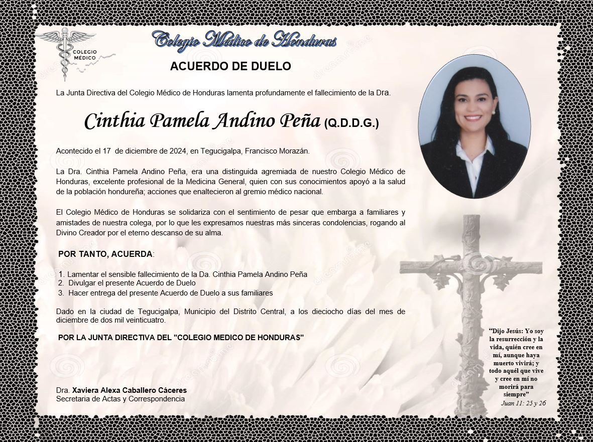 Acuerdo de Duelo Dra. Cinthia Pamela Andino Peña (Q.D.D.G.)