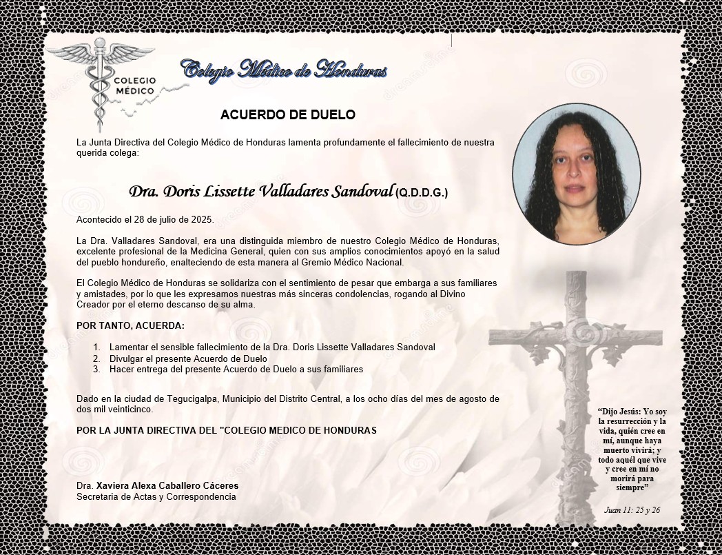 Acuerdo de Duelo Dra. Doris Lissette Valladares Sandoval (Q.D.D.G.)