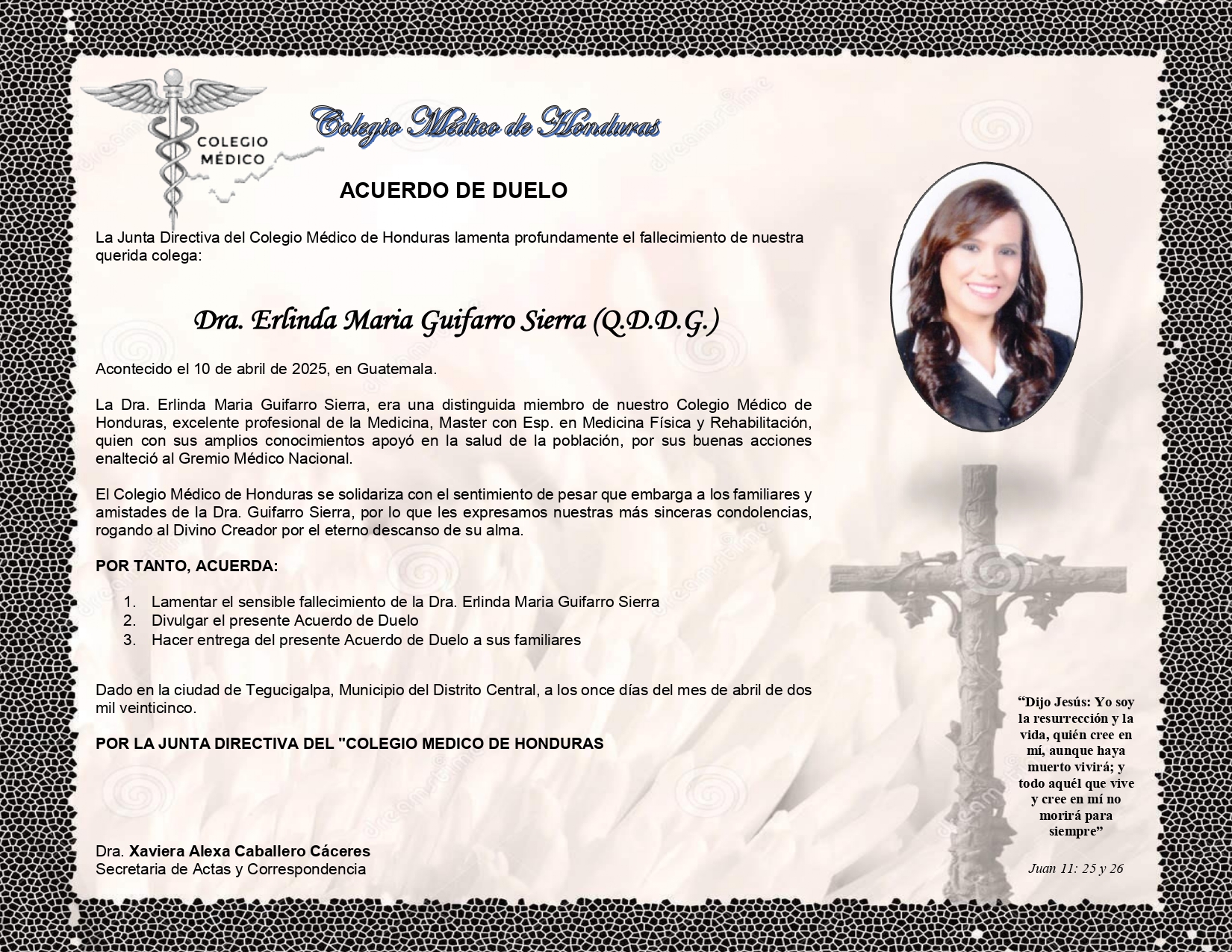 Acuerdo de Duelo Dra. Erlinda Maria Guifarro Sierra (Q.D.D.G.)