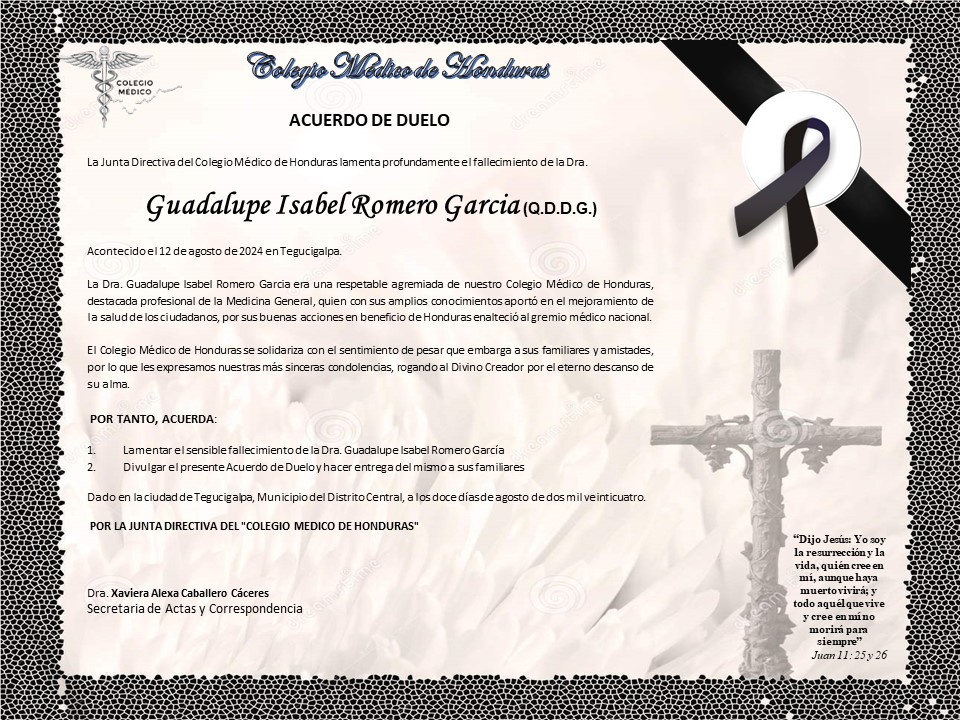 Acuerdo de Duelo Dra. Guadalupe Isabel Romero García (Q.D.D.G.)