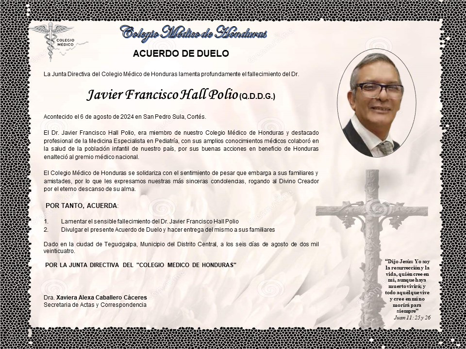 Acuerdo de Duelo Dr. Javier Francisco Hall Polio (Q.D.D.G.)