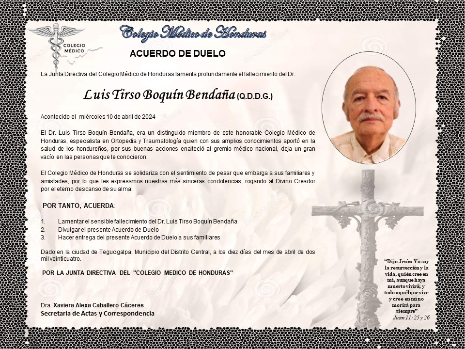 Acuerdo de Duelo Dr. Luis Tirso Boquín Bendaña (Q.D.D.G.)