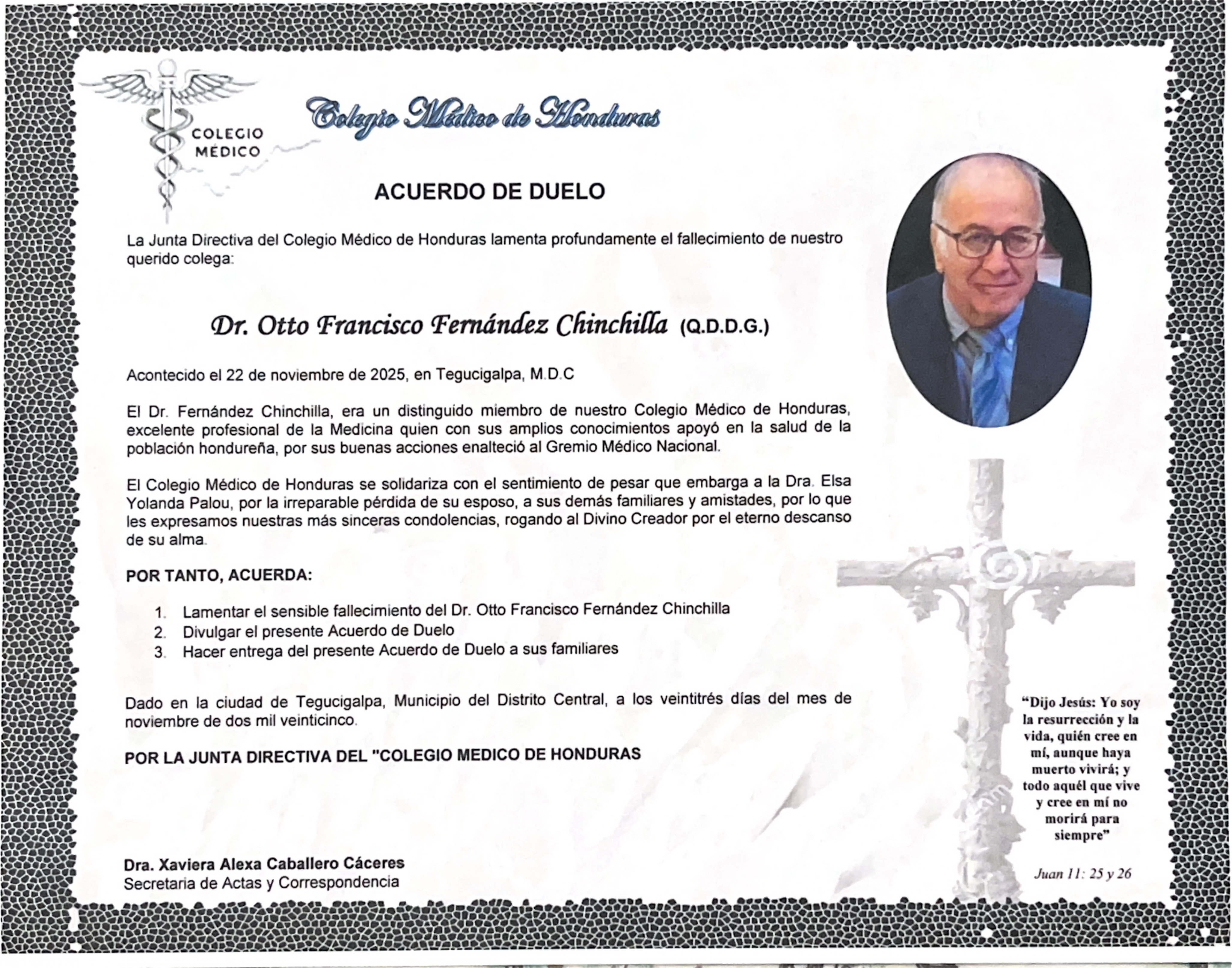 Acuerdo de Duelo para el Dr. Otto Francisco Fernández Chinchilla