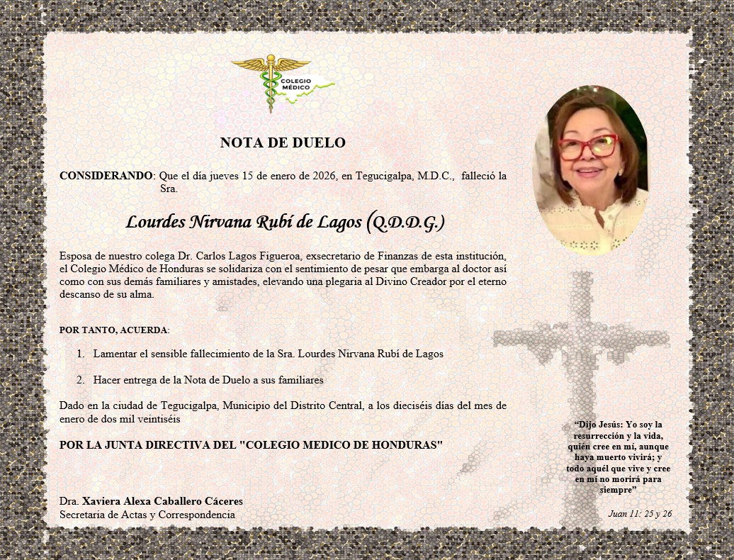 Nota de Duelo Sra. Lourdes Nirvana Rubí de Lagos (Q.D.D.G.)