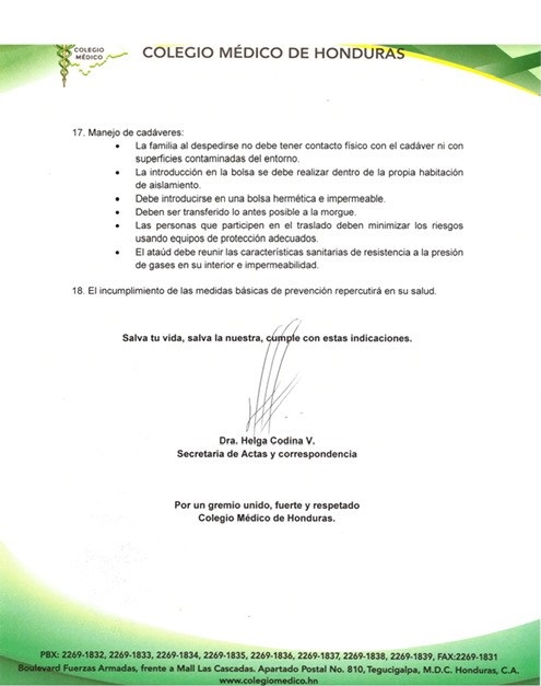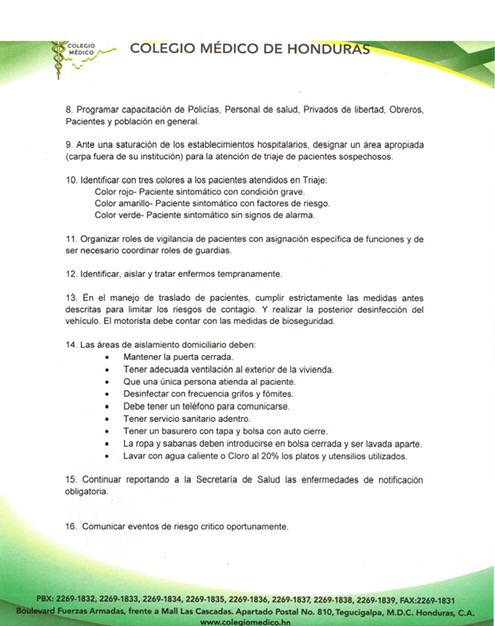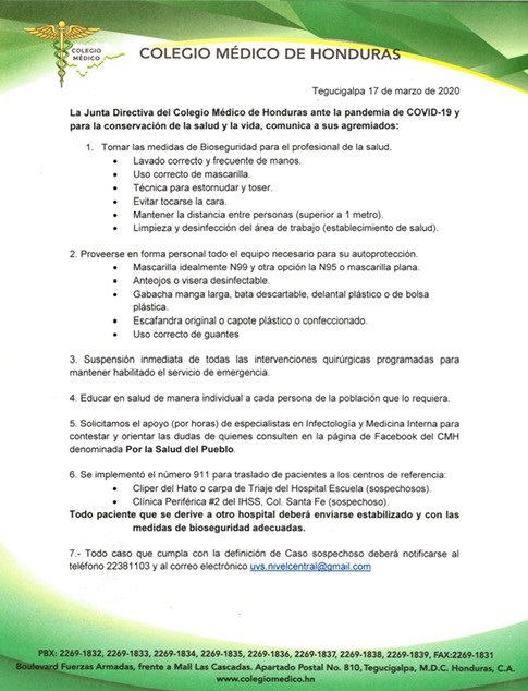 La Junta Directiva del Colegio Médico de Honduras ante la pandemia del