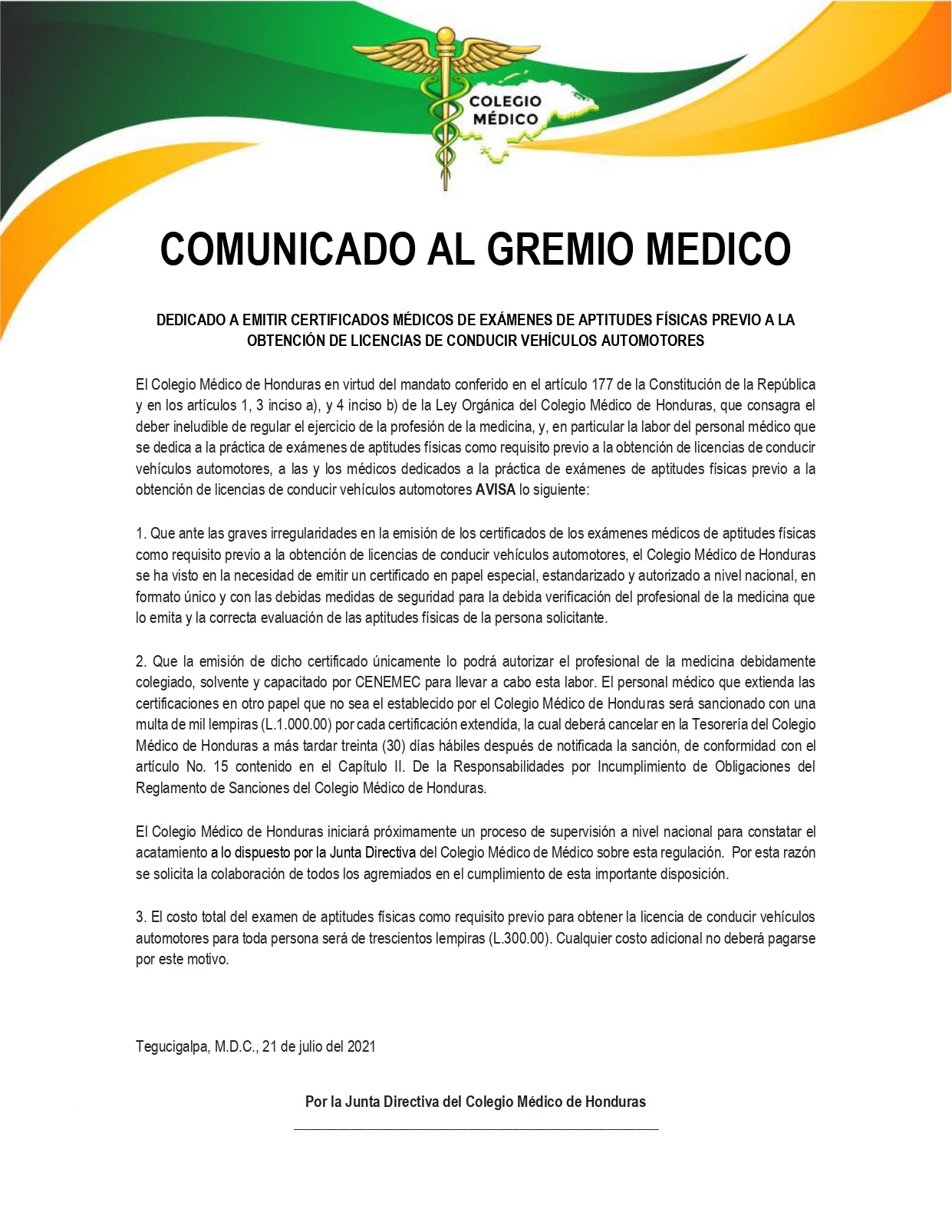 COMUNICADO AL GREMIO MEDICO