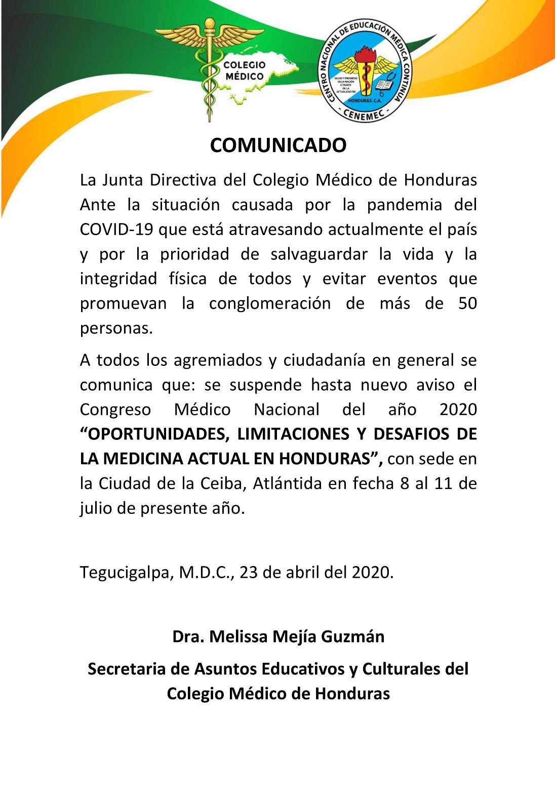 Comunicado CENEMEC sobre COMENAC