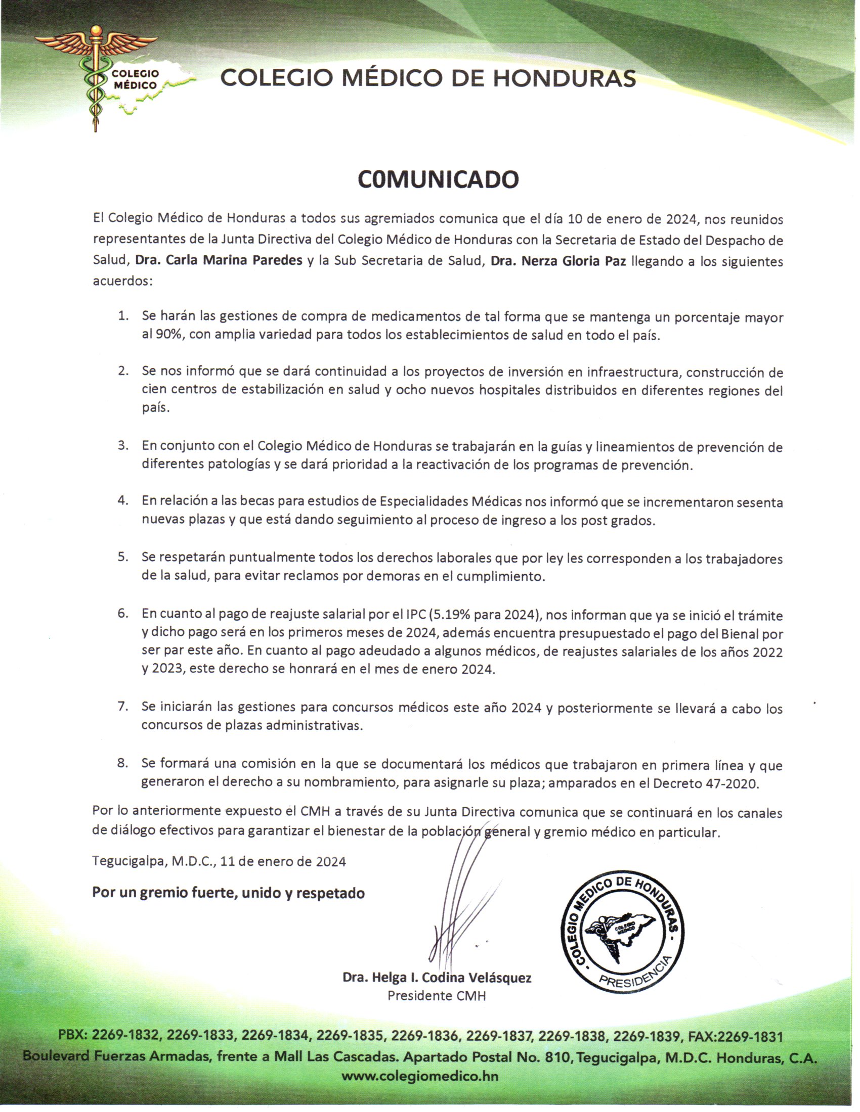 La Junta Directiva del Colegio Médico de Honduras, informa de la reunión de trabajo con autoridades de la Secretaría de Salud.