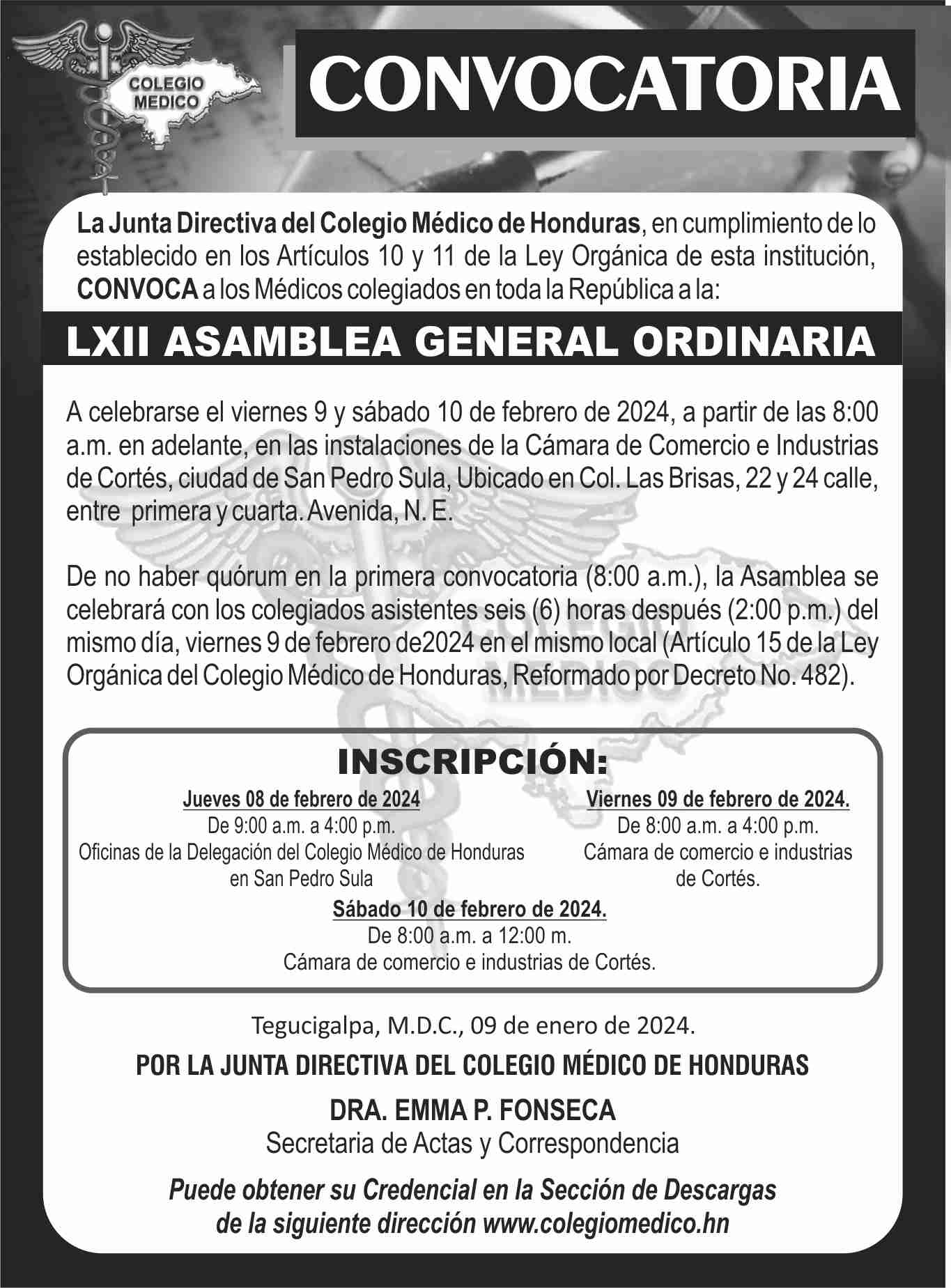 Convocatoria y Credencial Asamblea General Ordinaria LXII