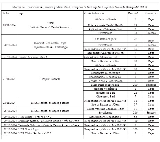 INFORME DE DONACIONES DE INSUMOS Y MATERIALES QUIRURGICOS DE LAS BRIGADAS HELP