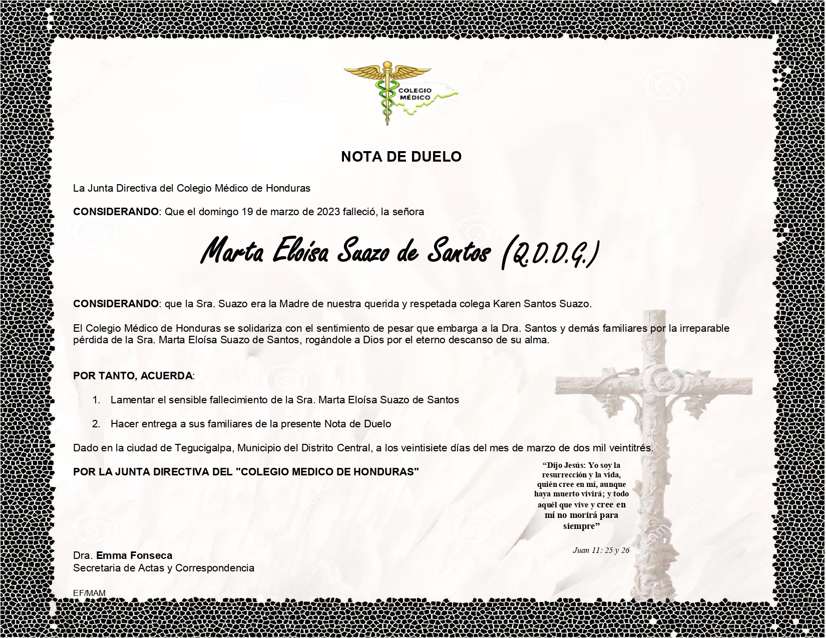 Nota de Duelo de Madre Dra. Karen Santos