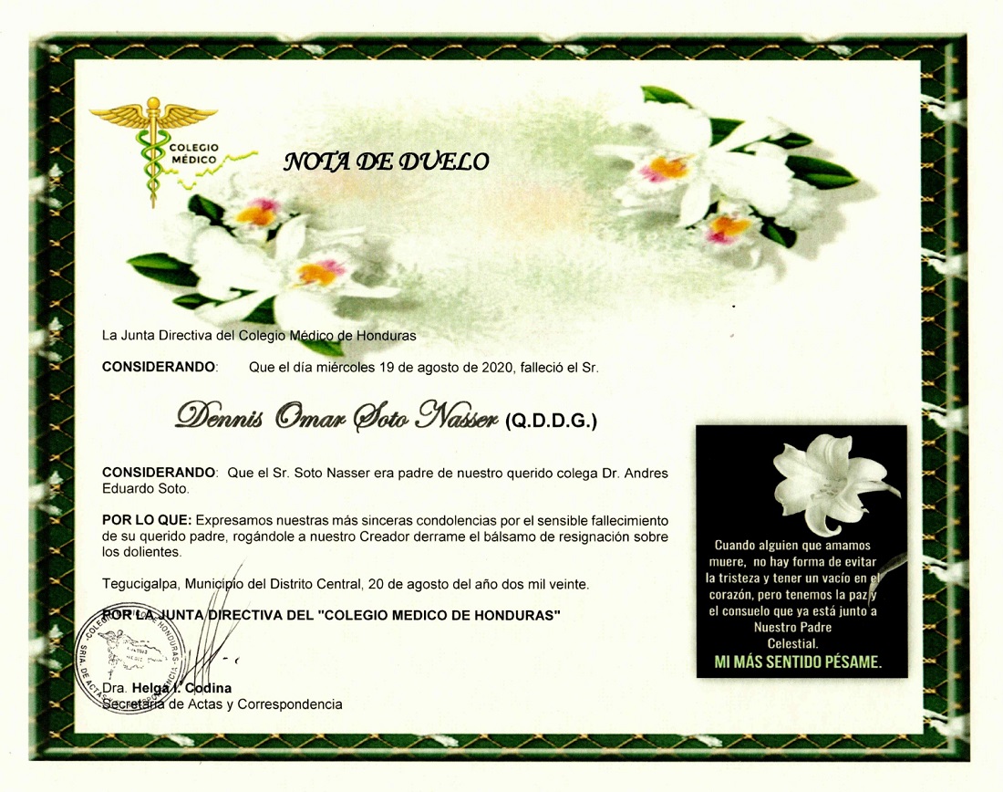 Obituario Dennis Omar Soto Nasser