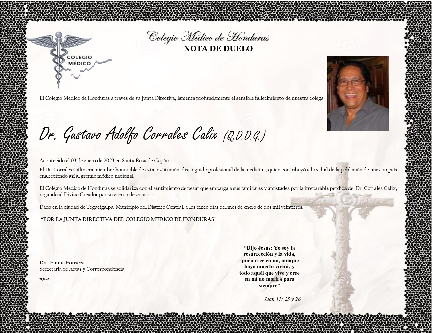 Obituario Dr. Gustavo Adolfo Corrales Cálix