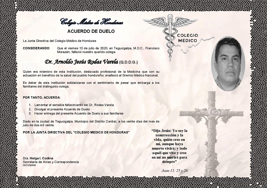 Obituario Dr. Arnoldo Jesús Rodas Varela