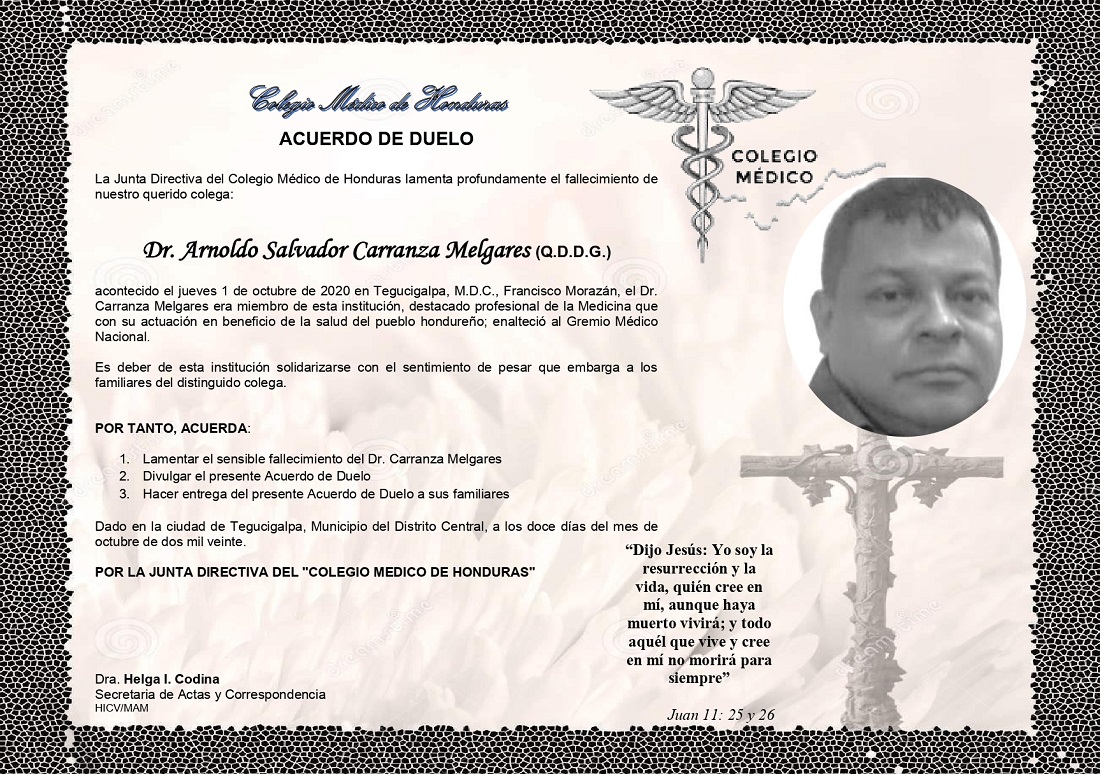 Obituario Dr. Arnoldo Salvador Carranza Melgares (Q.D.D.G.)
