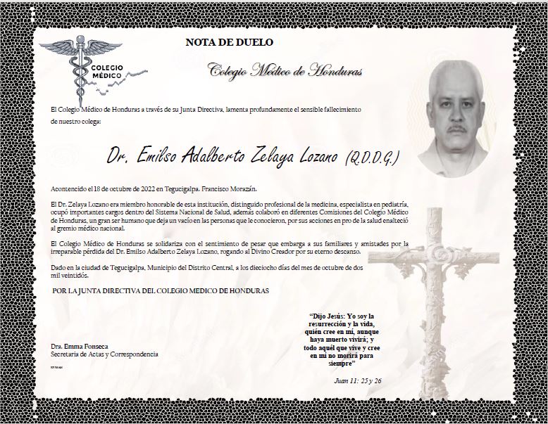 Obituario Dr. Emilso Adalberto Zelaya Lozano