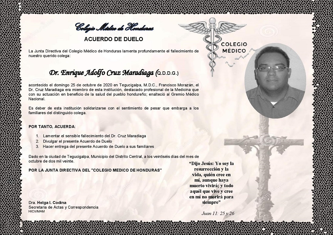Obituario Dr. Enrique Adolfo Cruz Maradiaga (Q.D.D.G.)
