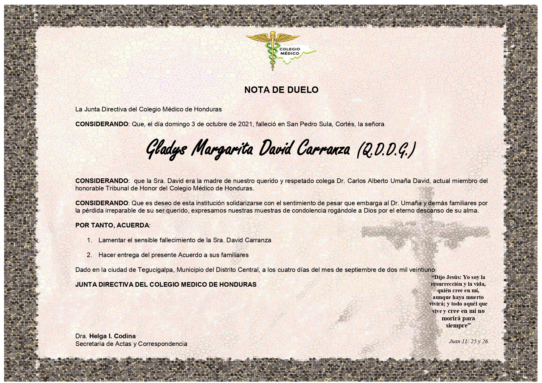 Obituario Gladys Margarita David Carranza (Q.D.D.G.)