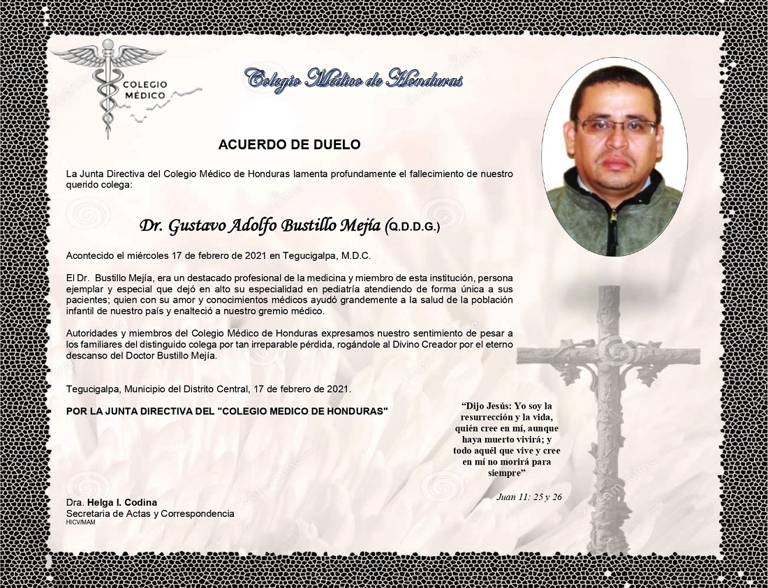 Obituario Dr. Gustavo Adolfo Bustillo Mejía (Q.D.D.G.)