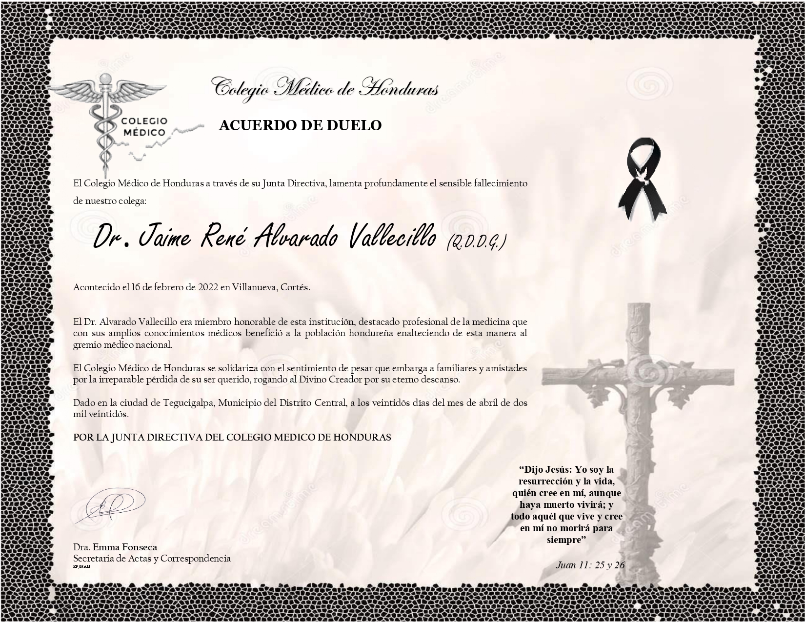 Obituario Dr. Jaime René Alvarado Vallecillo (Q.D.D.G.)