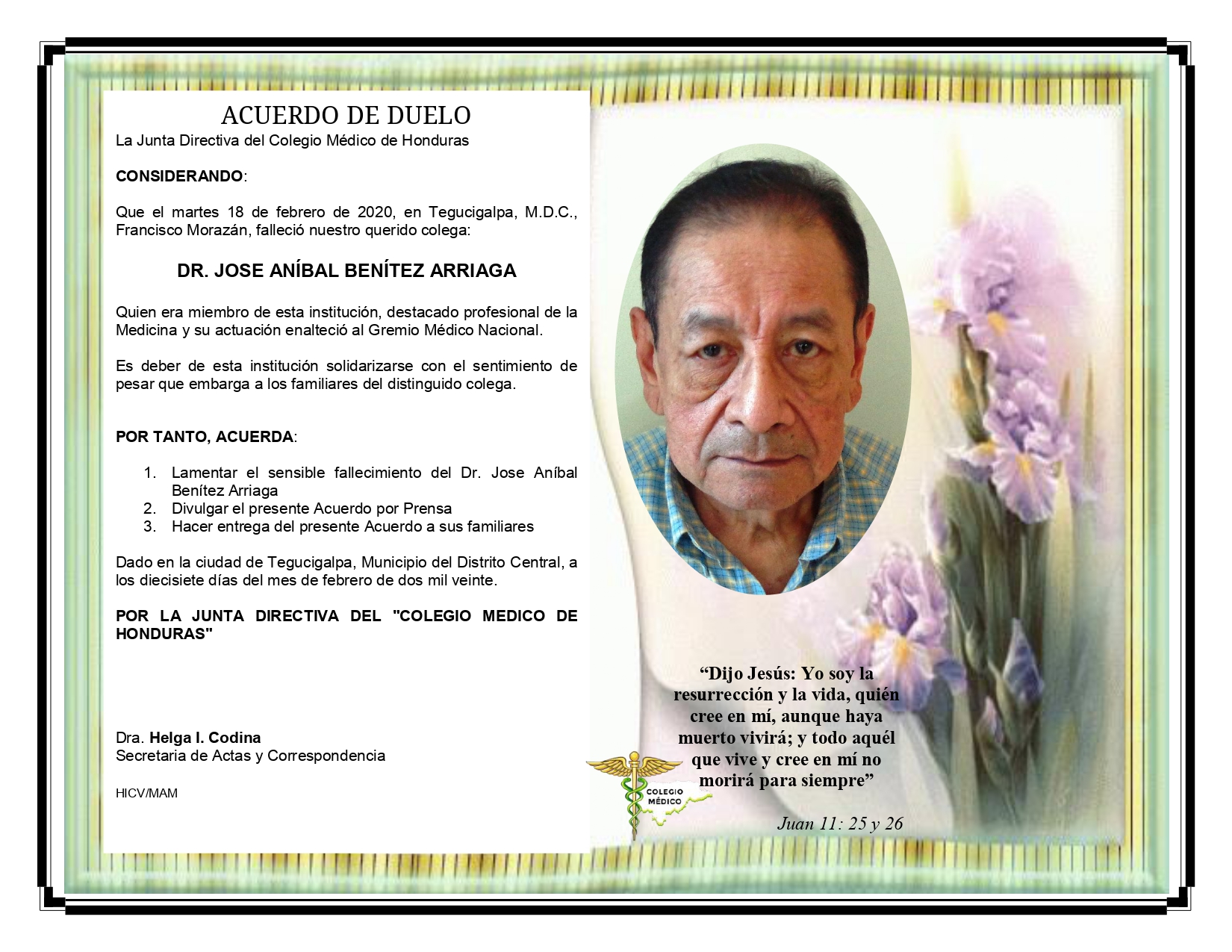 Obituario Dr. José Anibal Benítez Arriaga